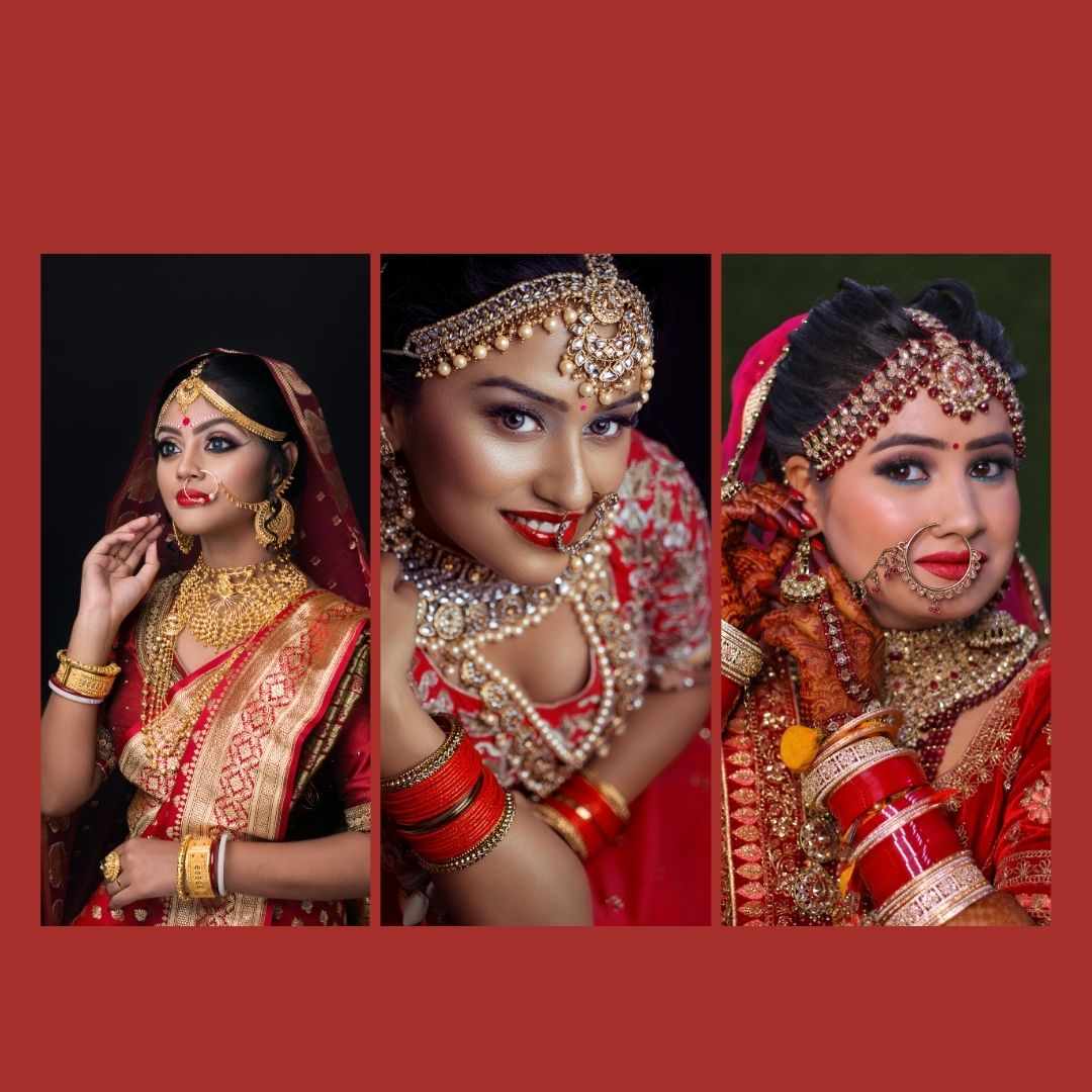 Most brides wear a necklace set, maang tikka, earrings, bangles, nath, and sometimes a kamarbandh. The exact number varies by culture and preference.